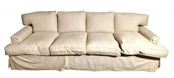 • Sofá para quatro lugares com sólida estrutura em madeira , estofado em tecido , marcas de uso. Med. 250 100 x 90 cm alt