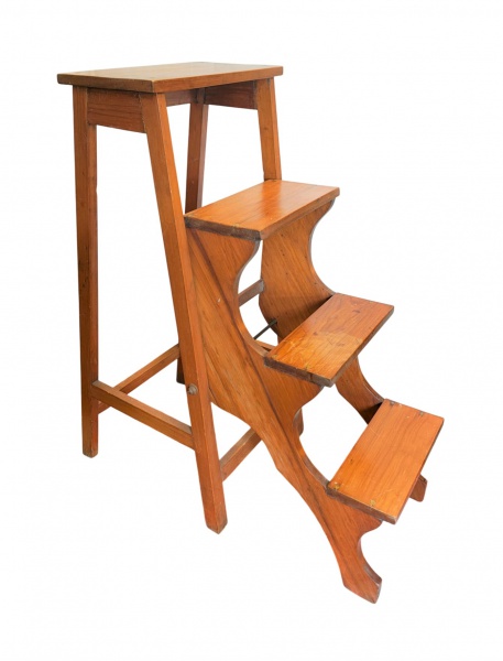 • Excepcional escada de biblioteca em madeira nobre . Med. 90 x 106 x 40 cm (aberta) e 90 x 35 x 40 cm (fechada)