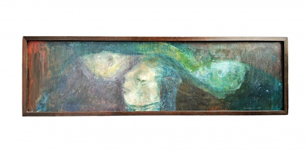 • João Quaglia: óleo s. tela , ass. inf. esq. e dat. 1965. Med. 62 x 19 cm. (Nota Biográfica: João Garboggini Quaglia (Salvador, BA, 20 de dezembro de 1928 - São João del-Rei, MG, 18 de agosto de 2014), conhecido como Quaglia, foi um pintor, desenhista, gravador, professor e muralista brasileiro)
