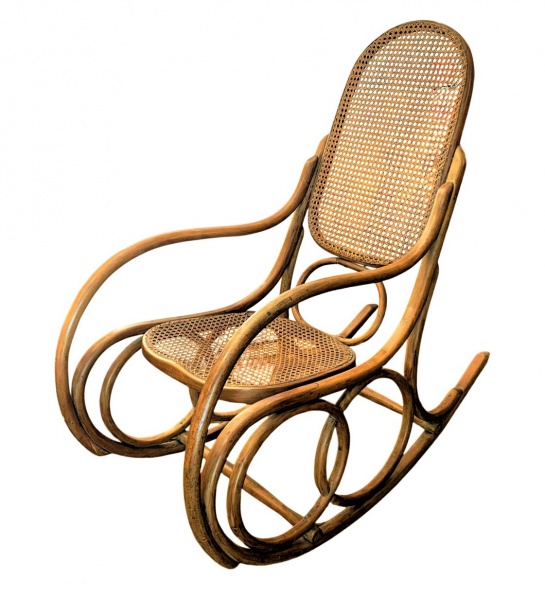 • Michael Thonet- 1950- Cadeira de balanço em madeira curvada e palhinha natural .Med. 100 x 54 x 104 cm alt