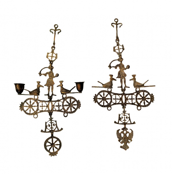 • Antigo par de candelabros de parede Bizantinos em ferro . Med. 50 x 24 cm