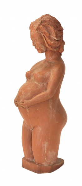 • Tania Curi : Bela e graciosa escultura em barro cozido representando maternidade , assinada e datada 1998. Med. 54 cm