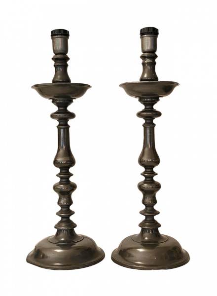 • Par de elegantes castiçais em estanho . Med. 53 cm alt