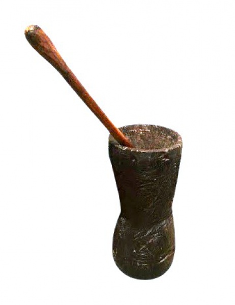 • Antigo pilão de fazenda em madeira com socador. Med. 70 cm alt (pilão)