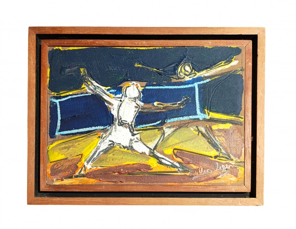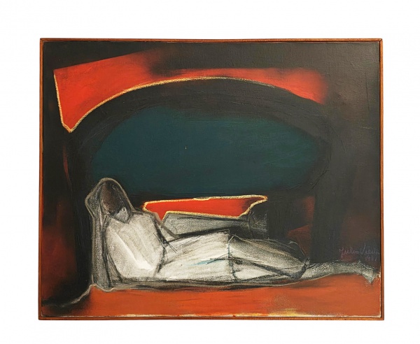 • João Quaglia: óleo s. tela , ass. inf. esq. e dat. 1965. Med. Mi 70 x 50 cm Me 78 x 58 cm . (Nota Biográfica: João Garboggini Quaglia (Salvador, BA, 20 de dezembro de 1928 - São João del-Rei, MG, 18 de agosto de 2014), conhecido como Quaglia, foi um pintor, desenhista, gravador, professor e muralista brasileiro)