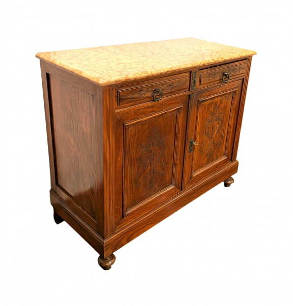 • Móvel bar em madeira nobre com caixa reta , tampo em mármore , com duas gavetas sobre duas portas inferiores. Med. 113 x 54 x 100 cm