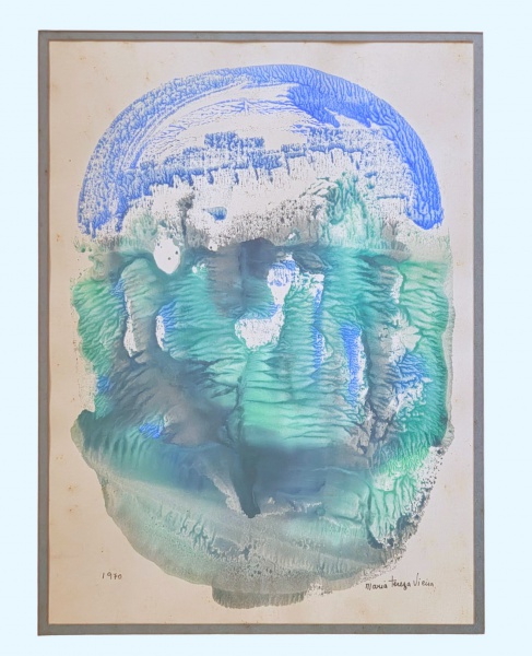 • Maria Tereza Vieira : "Sem título", técnica mista s. papel , ass. inf. dir. e dat. 1970. Med. Mi 44 x 24 cm Me 52 x 32 cm