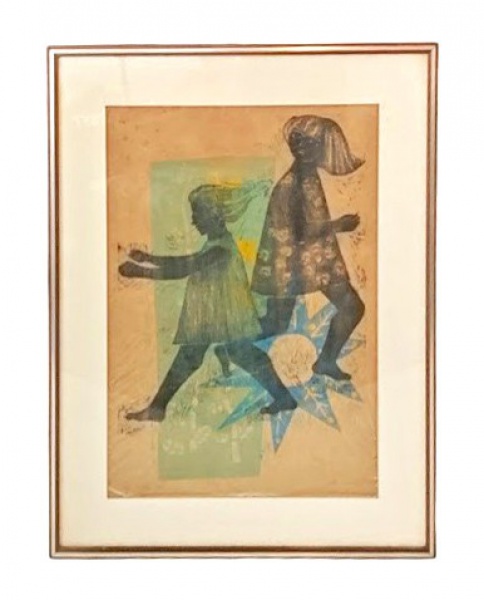 • Zorávia Bettiol (Porto Alegre RS 1935): "A Cabra cega", Xilogravura, ass. inf. dir. e dat. 1964, exemplar 5/30. Med. Mi 70 x 50 cm  Me 80 x 60 cm