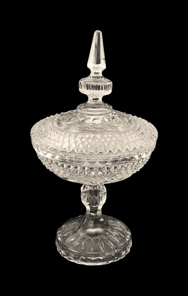 • Bela compoteira com tampa em cristal lapidado. Med. 30 cm alt