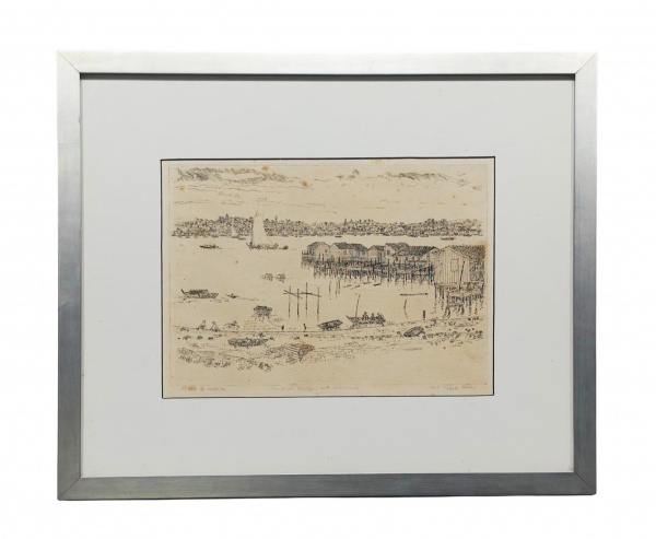 • Geza Heller (1902-1992): "Alagados Salvador", Litografia, prova do artista, ass. inf. dir. e dat. 1969, com dedicatória . Med. Mi 22 x 31 cm  Me 45 x 42 cm