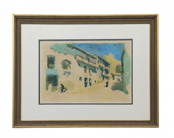 • Assinatura não identificada: "Sem título", aquarela s. papel , ass. inf. dir. (não decifrada). Med. Mi 23 x 32 cm  Me 40 x 49 cm