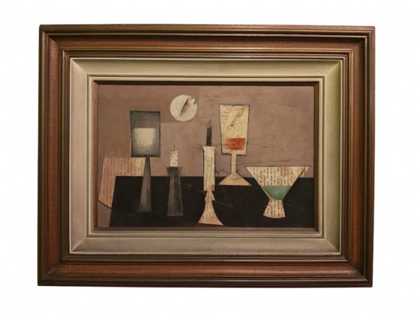 • Carlos Scliar (Santa Maria RS 1920 - Rio de Janeiro RJ 2001): "Várias Taças e Castiçais", vinil e colagem encerados s. tela , ass. verso , localizado Cabo Frio e dat. 1992 , apresenta cachê da Galeria Contorno, procedente do ateliê do artista. Med. Mi 37 x 56 cm   Me 67 x 86 cm