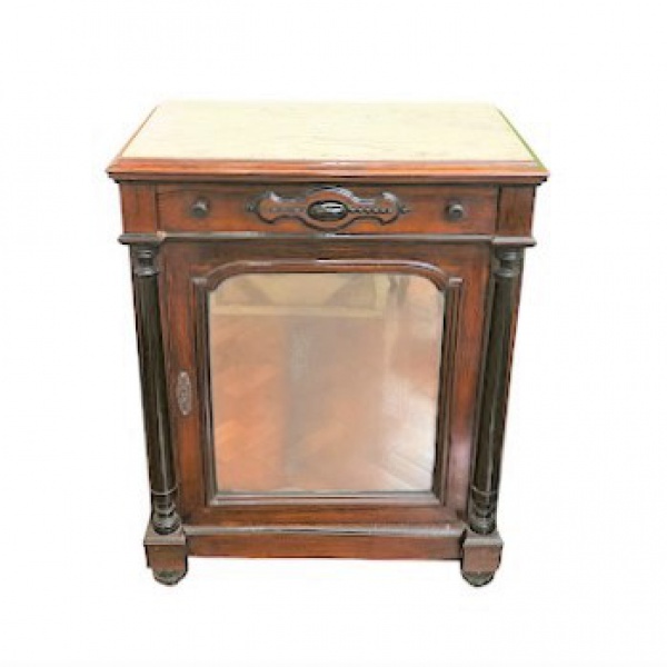 • Belíssimo dunquerque em jacarandá , tampo em mármore carrara , caixa reta , um gavetão com entalhe e puxadores em madeira, parte inferior em madeira com espelho , Brasil séc. XIX. Med. 77 x 43 x 100 cm alt