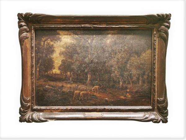 • James Desvarreux-Larpenteur : "Paisagem com ovelhas", óleo s. tela ,ass. inf. dir. Med. Mi 29 x 46 cm  Me 49 x 66 cm