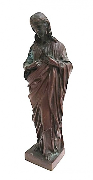 • Jean-Marie Bonnassieux: Escultura em bronze , representando "Jesus Cristo", assinada. Med. 15 cm alt (Nota Biográfica: Jean-Marie Bonnassieux, escultor francês, nasceu em 18 de setembro de 1810 em Panissières (Loire). Ele foi admitido na Escola de Desenho de Lyon, onde ganhou vários prêmios. Ele entra na oficina de Augustin Dumont .Em 1834, foi admitido na Escola de Belas Artes e obteve o Prix de Rome em 1836 (Sócrates bebendo cicuta).Ele também recebe inúmeras comissões religiosas.Ele ganhou uma medalha de primeira classe na Exposição Universal de 1855.Bonnassieux recebeu a Legião de Honra em 1855 e tornou-se membro do Instituto.Durante o Segundo Império, foram-lhe confiados diversos projetos em Paris, nomeadamente o Palácio do Louvre.Ele foi nomeado professor na Escola de Belas Artes em 1881.O estilo de Jean-Marie Bonnassieux divide-se entre o movimento neoclássico, então em voga, e o gênero da arte cristã, ao qual suas esculturas religiosas serão associadas.Jean-Marie Bonnassieux morreu em Paris em 3 de junho de 1892