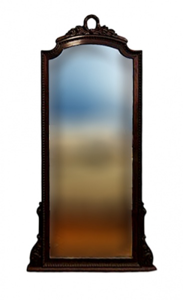 • Belo espelho com moldura em madeira nobre, com finos entalhes e frontão com entalhes em folhas de acanthus. Med. 76 x 180 cm alt
