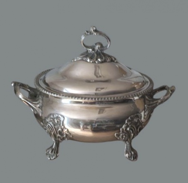 • Sopeira em prata portuguesa contraste Porto águia, 1ºtítulo, teor 916 ml circa 1930. Peso. 3040 gr . Med. 42 x 25 x 32 cm alt