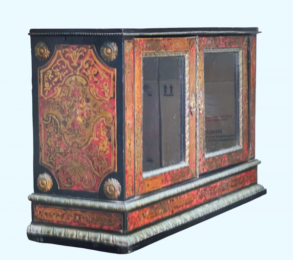 • Excepcional armário de parede, com duas portas centrais de vidro , finíssima marqueterie em bronze , período Napoleão III , estilo Boulle , França séc. XIX. (marcas do tempo). Med. 62 x 24 x 47 cm alt